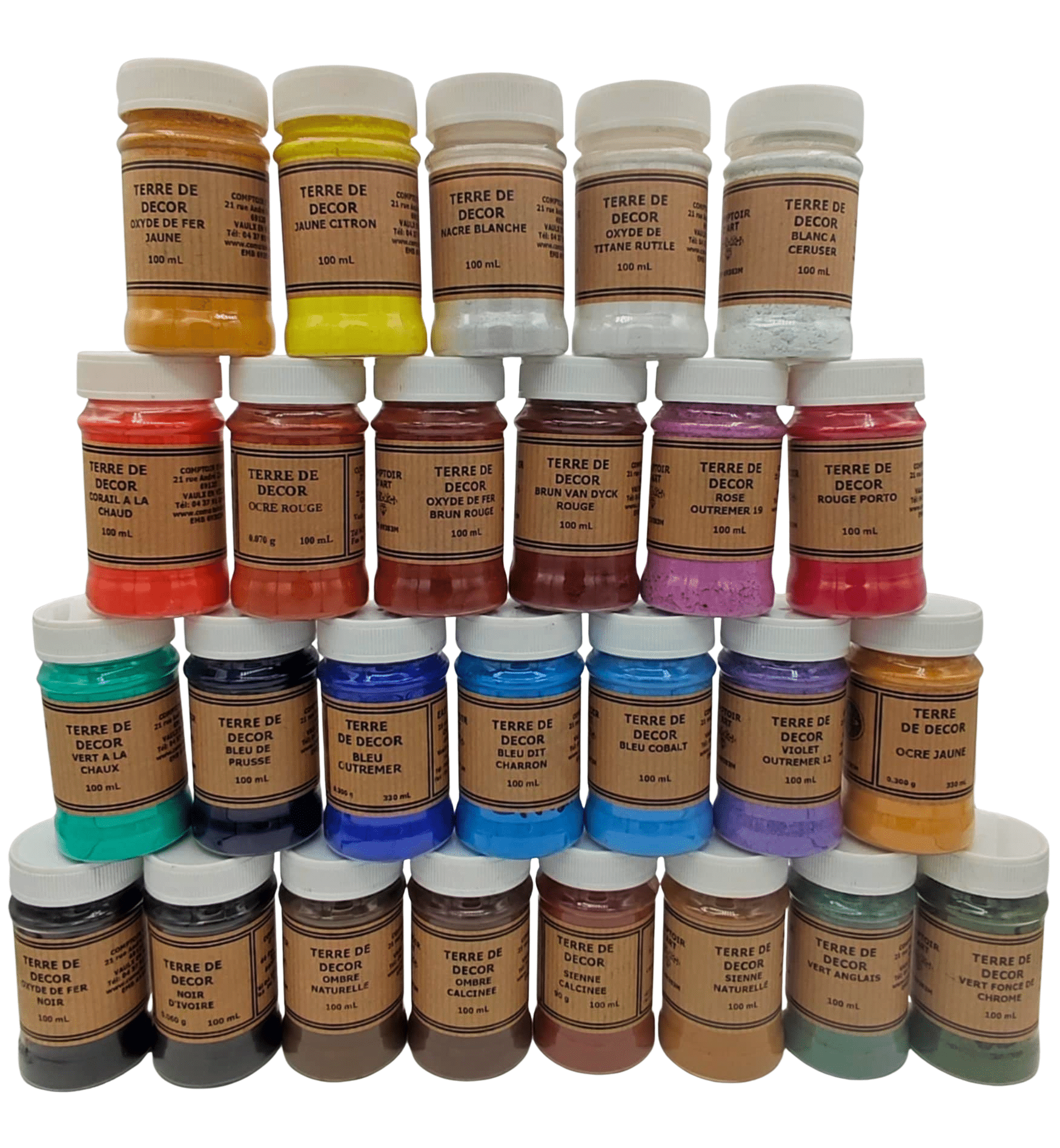 Pigment naturel. Utilisé pour la coloration de nombreux mélanges et décors.