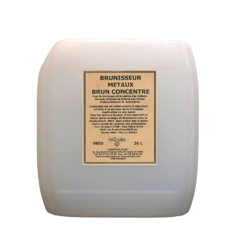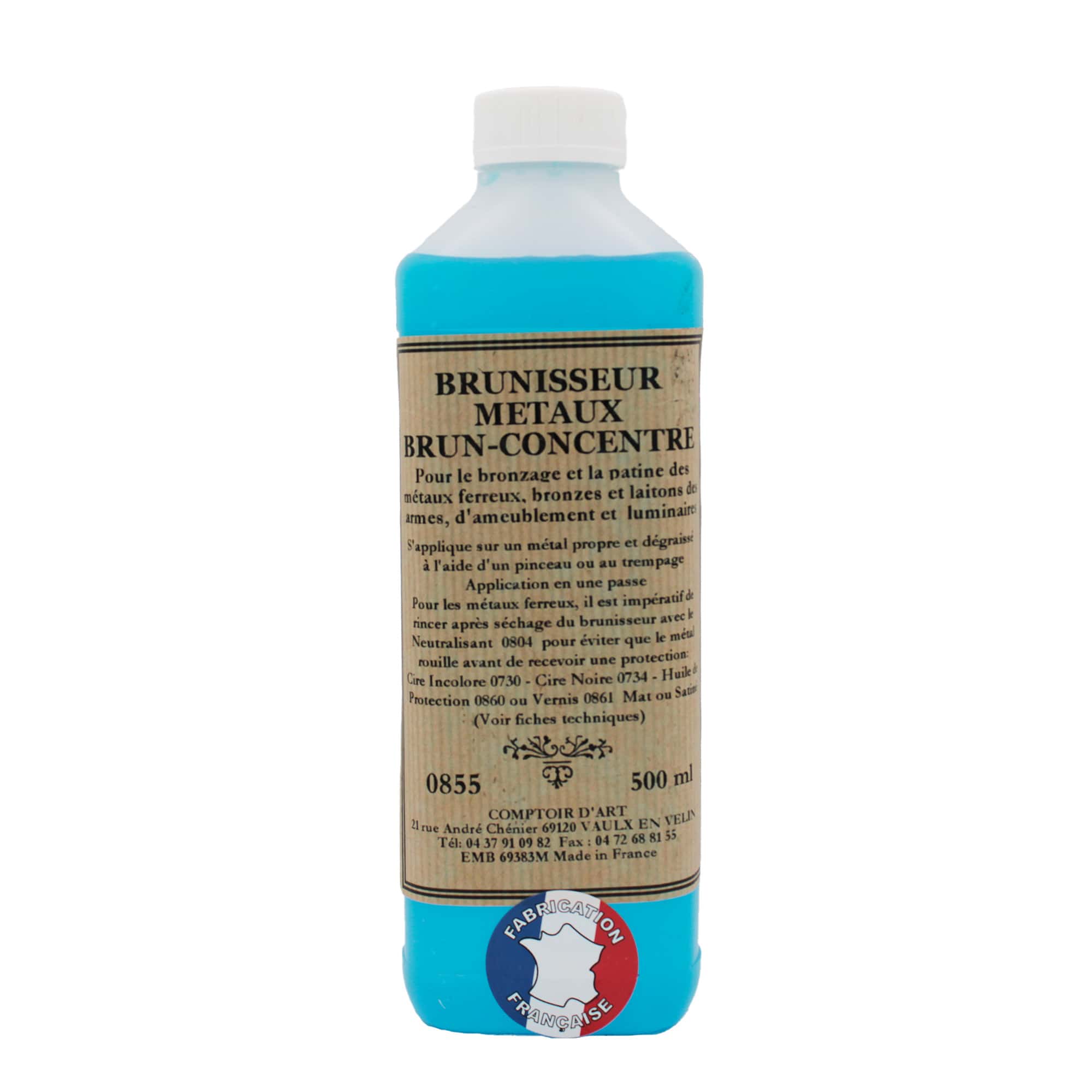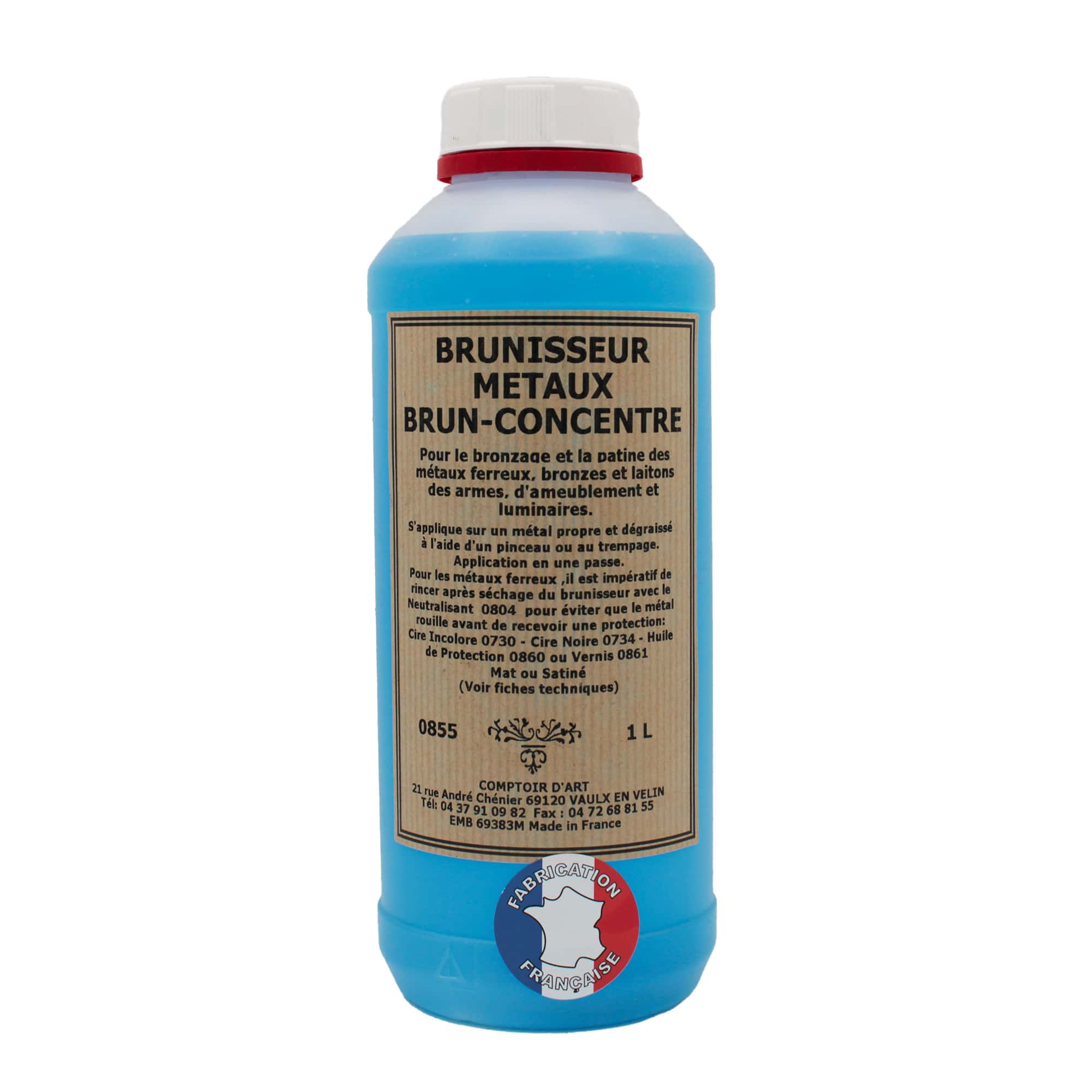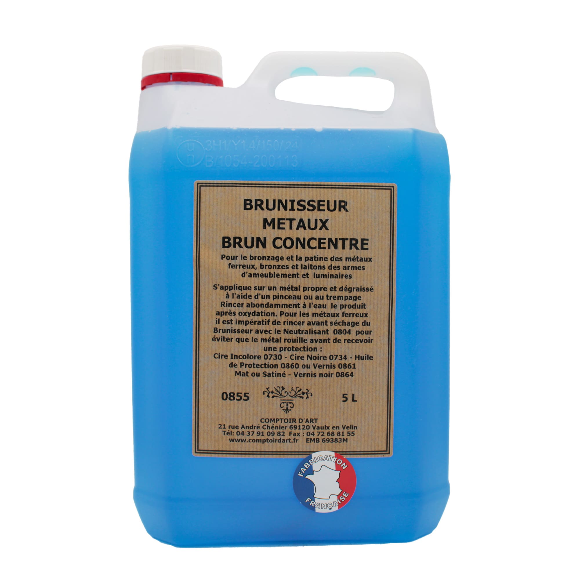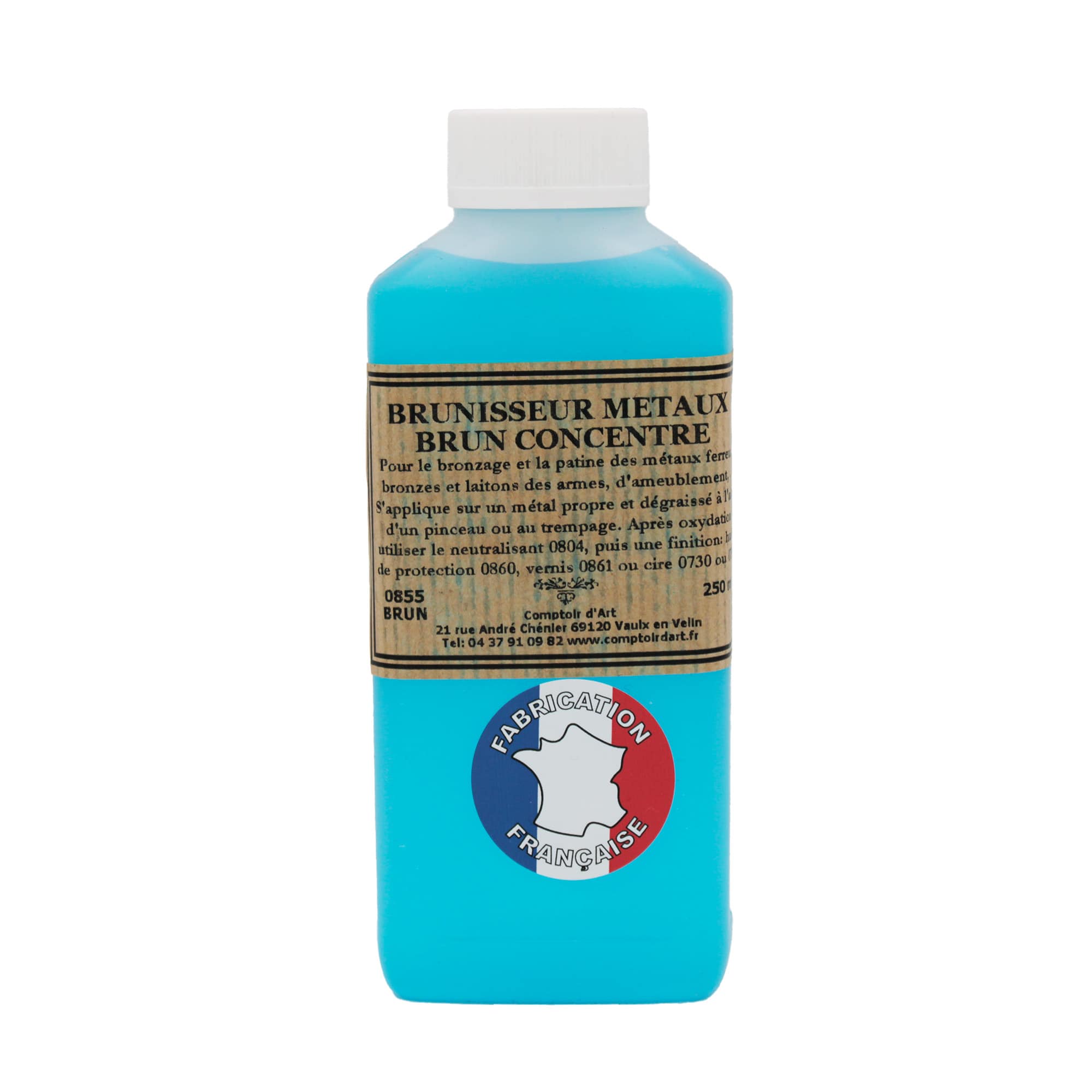 Le Brunisseur de Métaux noir concentré 0855 colore instantanément par oxydation à froid tous types de métaux : les métaux ferreux (acier et fonte) et les métaux non ferreux (le zinc, le cuivre, le bronze, l'étain et le laiton).