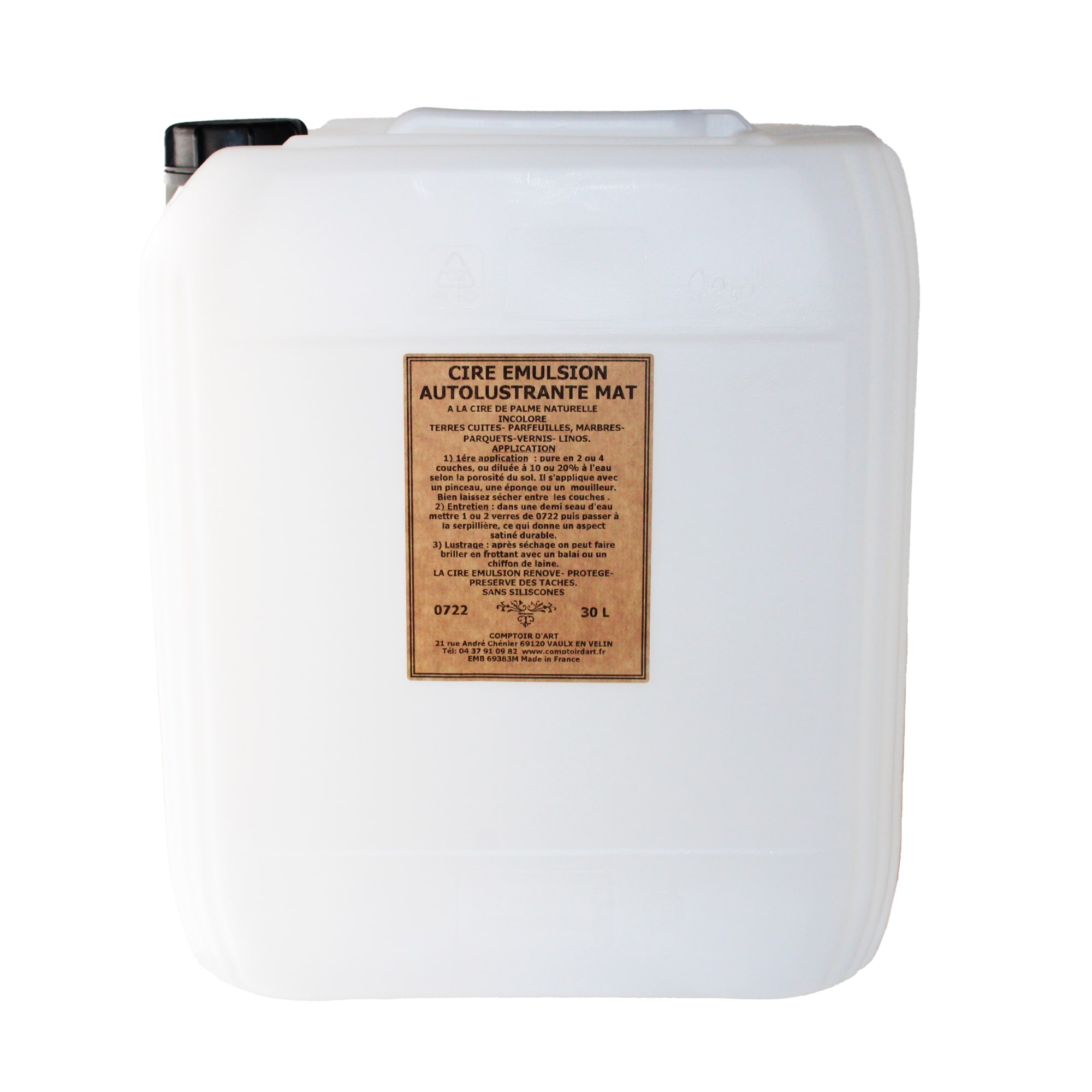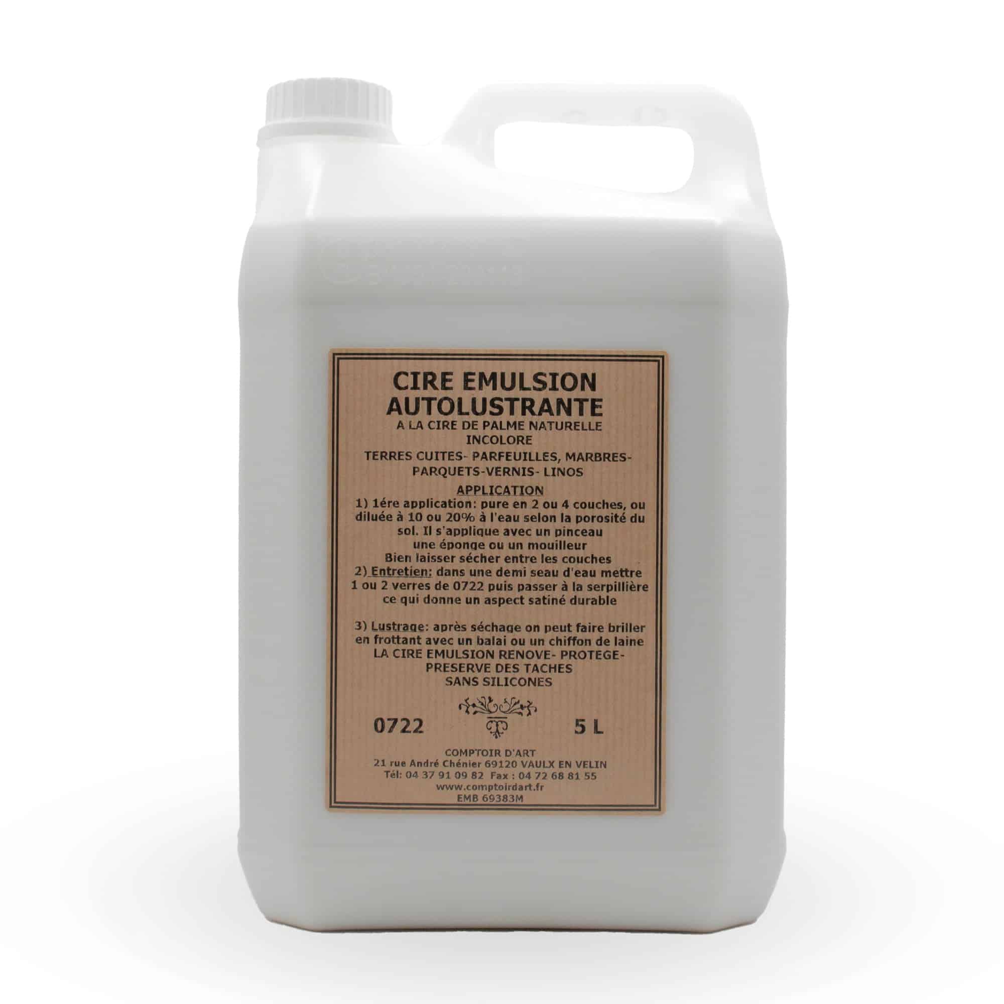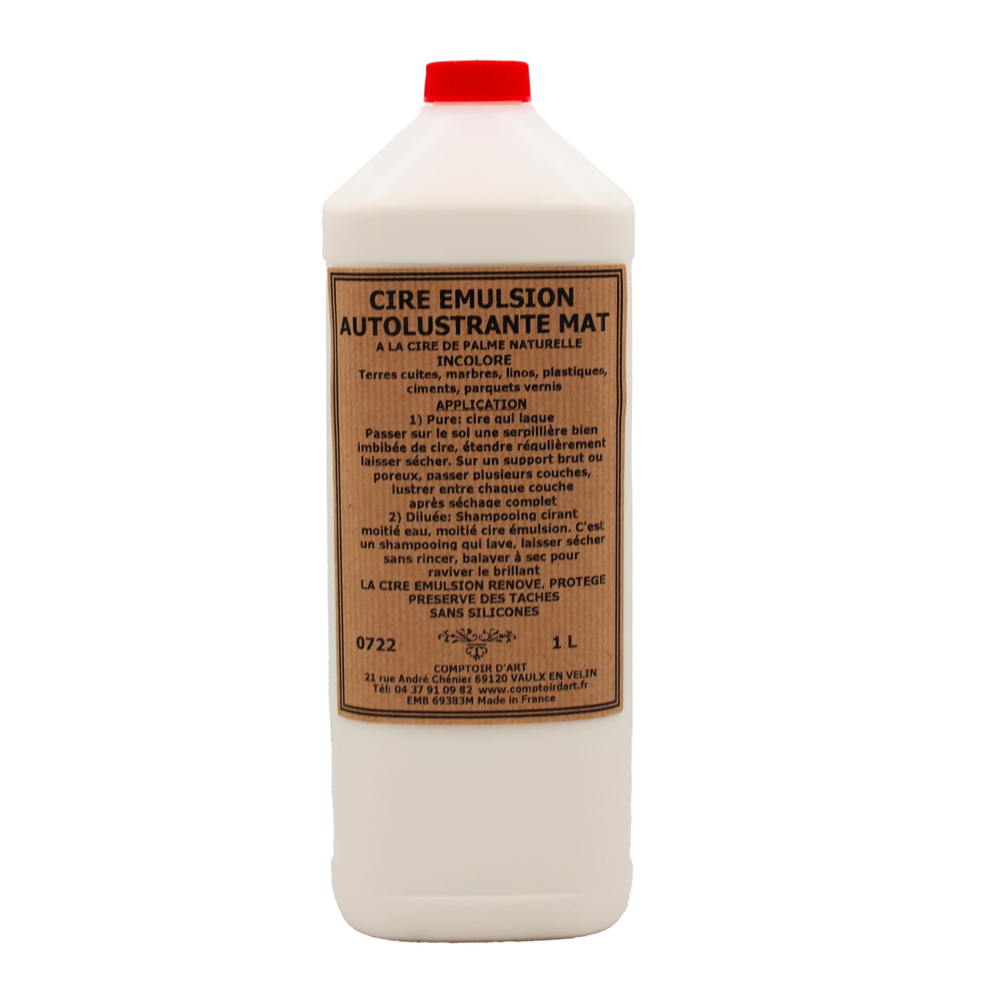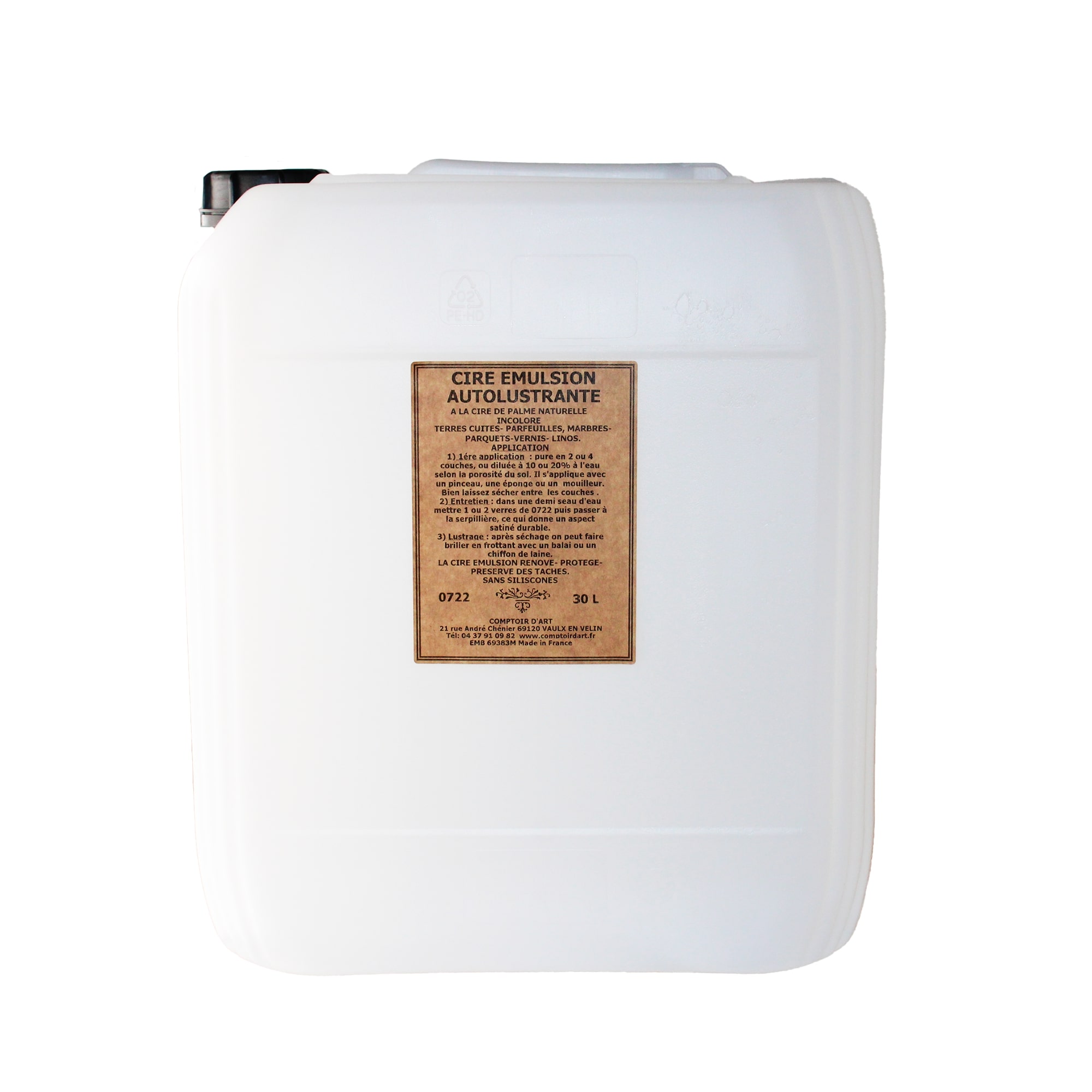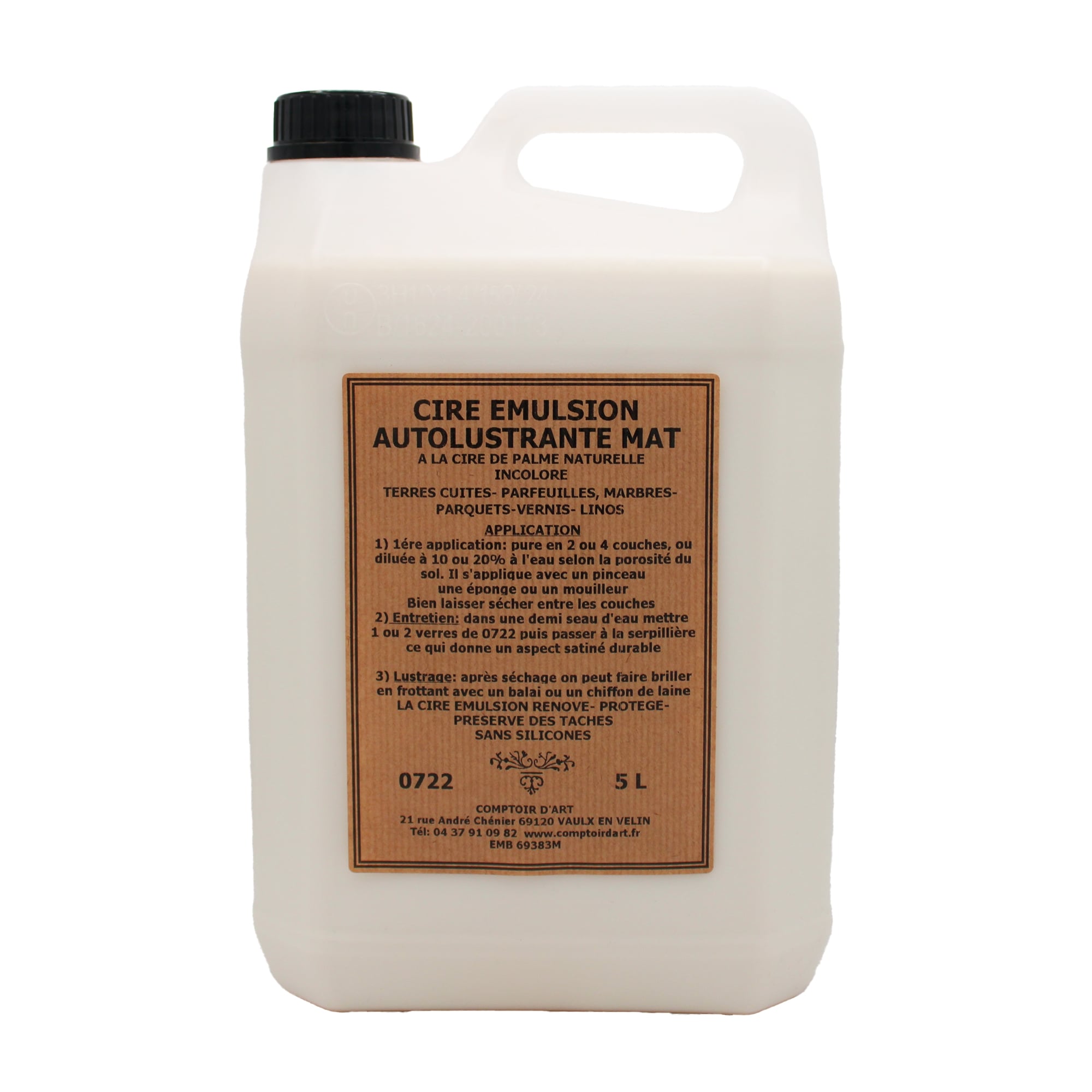 L’Émulsion Autolustrante de cire de Carnauba, sans silicones, possède plus de 50% d’extrait sec et donne au sol un aspect satiné de longue durée, facile d’entretien. Ce produit rénove, protège et préserve des tâches tous les sols durs : terres cuites, marbres, carrelages, linos plastiques, ciments, parquets vernis…