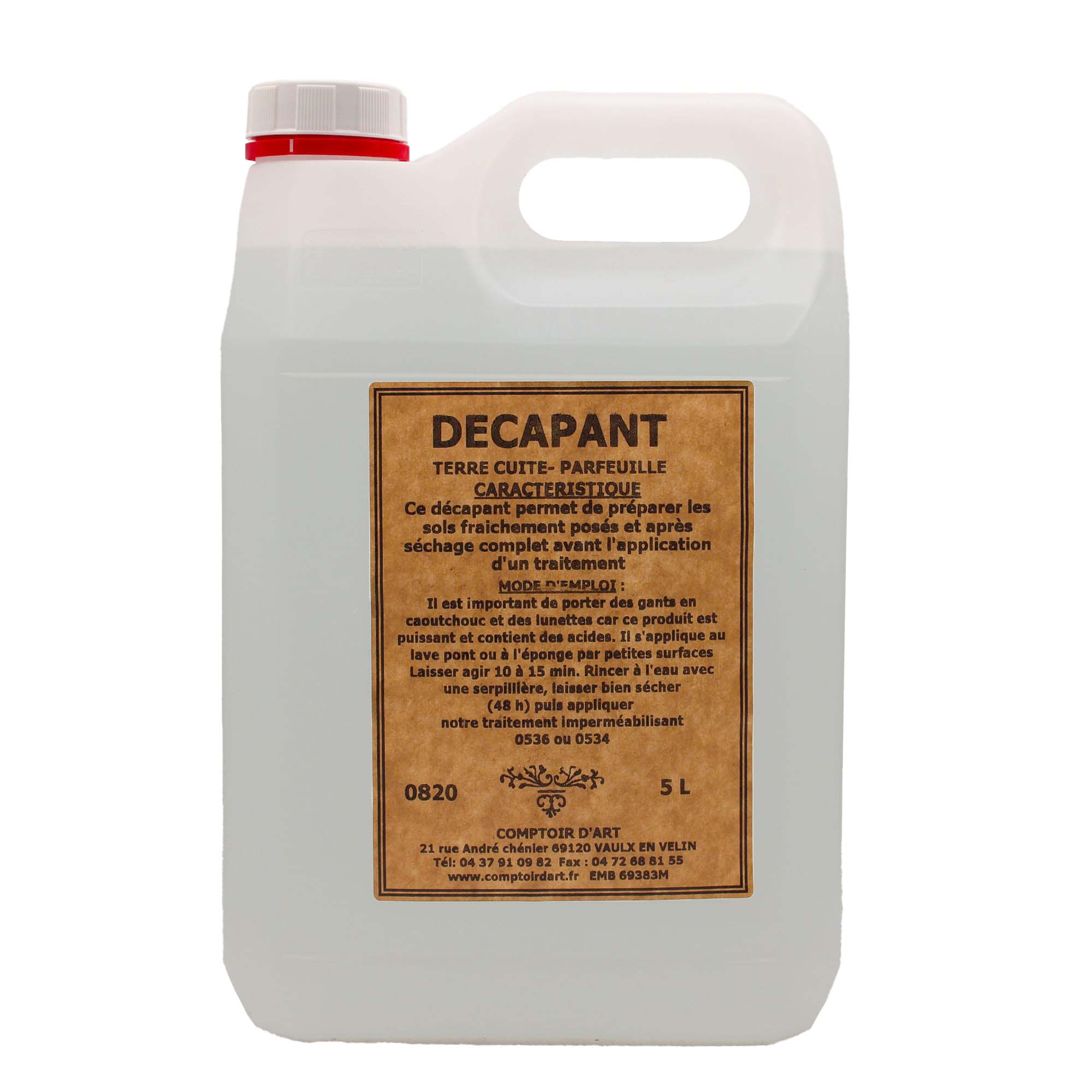 Pour les terres cuites posées sur une chape en ciment ou à la chaux : il est indispensable d’attendre 28 jours que la carbonatation se fasse, car cette opération génère des remontées de calcaire, qu’on éliminera avec ce décapant