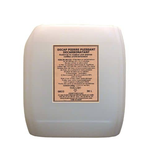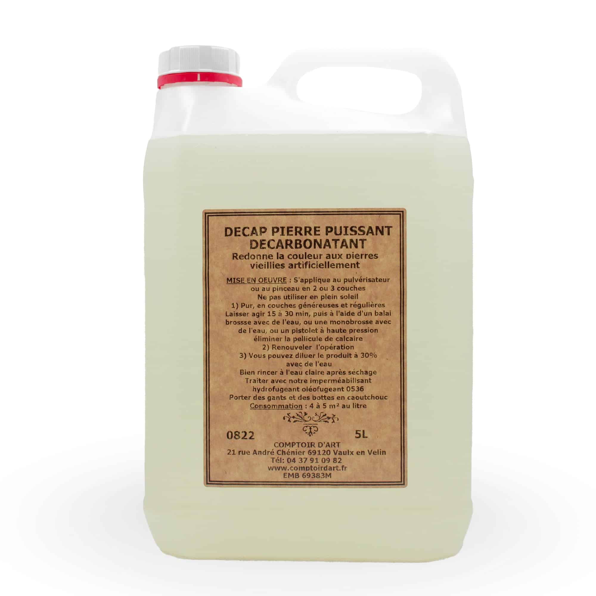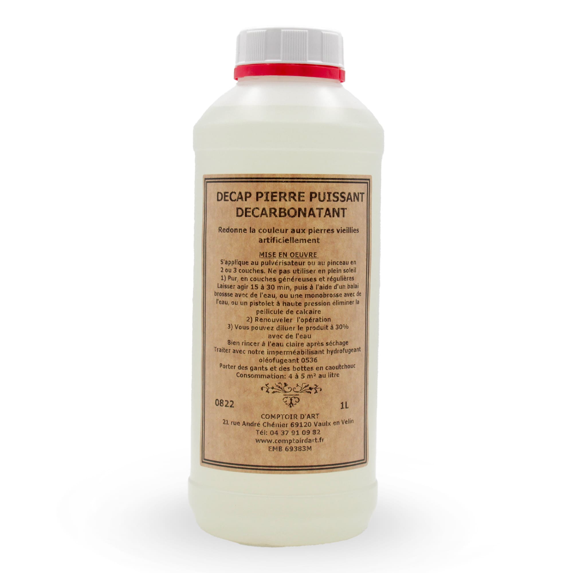 1ère couche : pur en couches généreuses et régulières. Laisser agir 15 à 30 mn, puis à l’aide d’un balai brosse avec de l’eau , d’une mono-brosse avec de l’eau éliminer la pellicule de calcaire.
