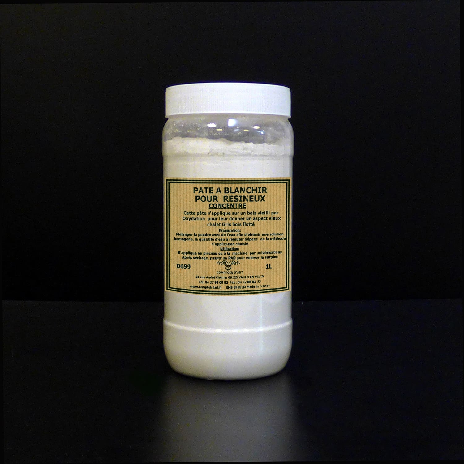 Cet oxydant permet de réaliser des patines extérieures et intérieures blanchies aussi bien sur les résineux que sur les bois tanniques.