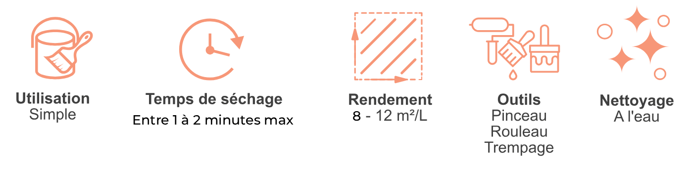 La consommation est d'environ 8 à 12 m2 au litre (selon les travaux).