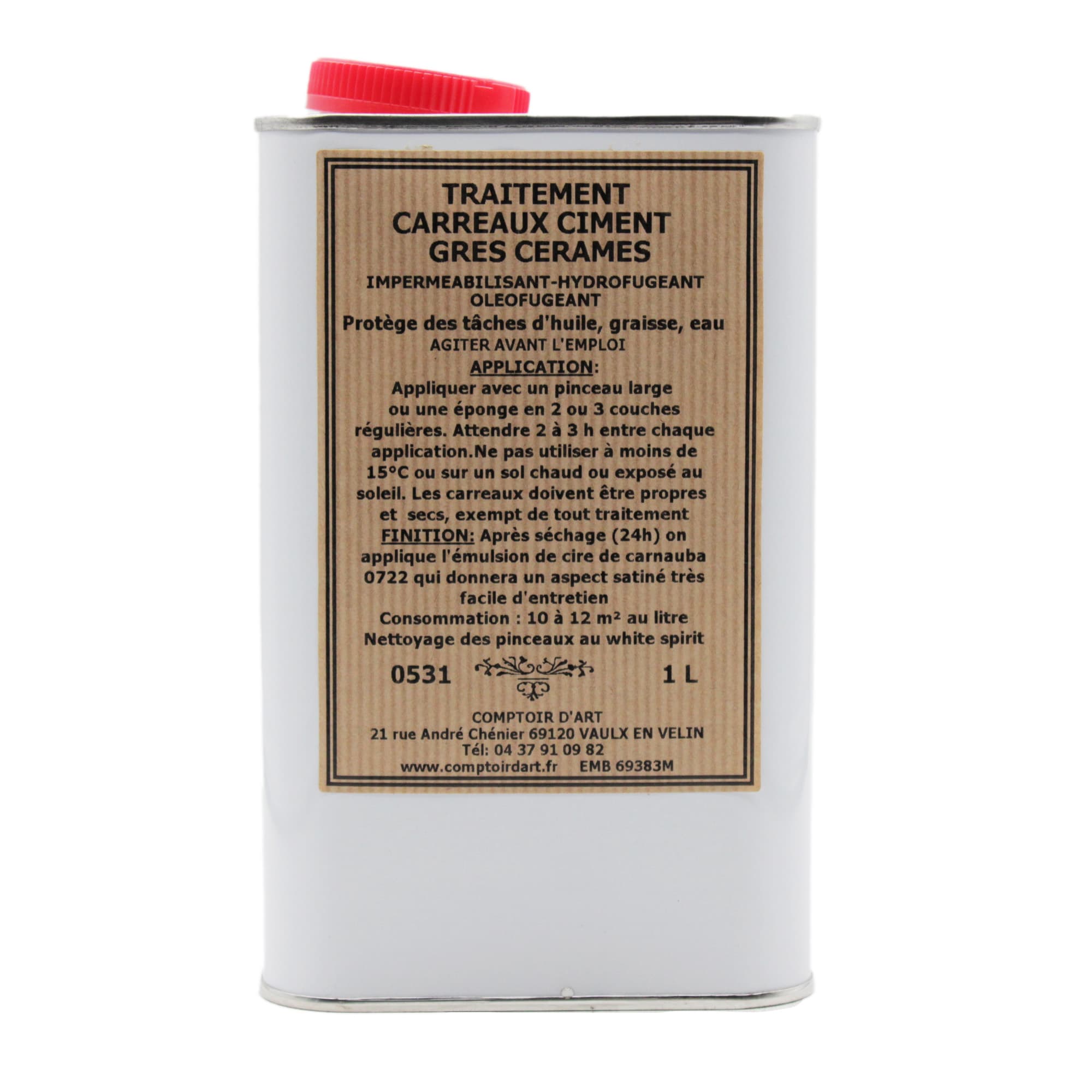 - Finition : après un séchage de 24 h ou + on peut appliquer une finition qui donnera un aspect satiné avec notre émulsion de cire de Palme 0722 d’un entretien très facile.