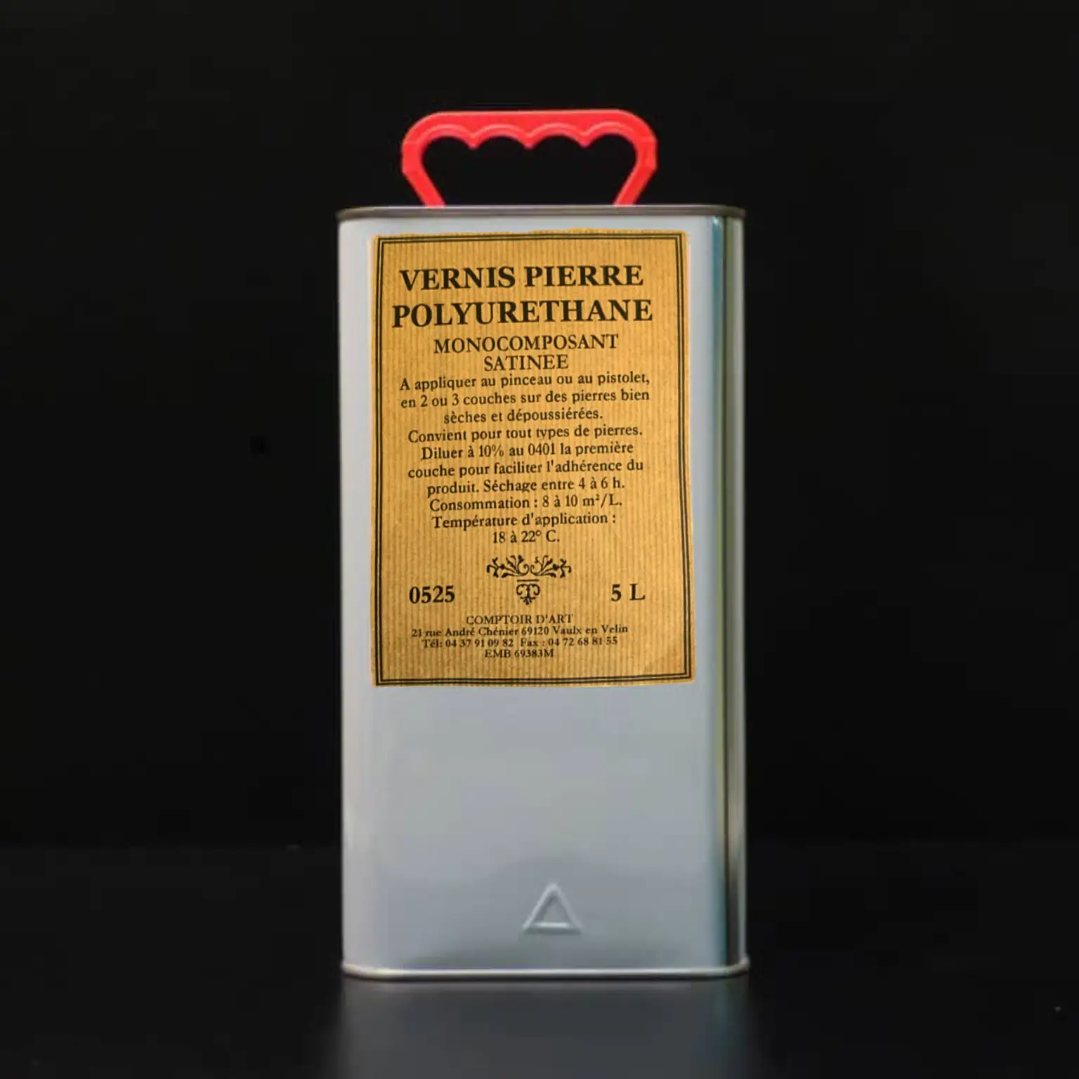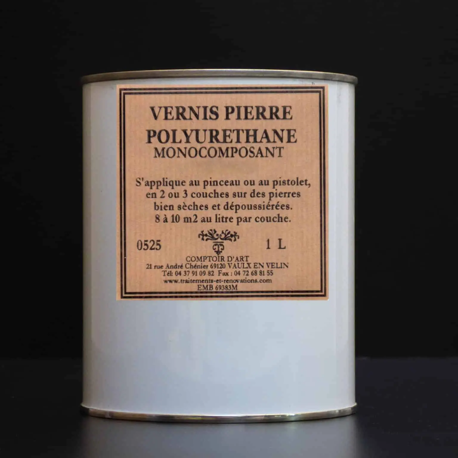 CARACTERISTIQUES : Présenté en un seul emballage, donc pas de mélange de catalyseur, ce qui offre l’avantage de la simplicité et souplesse d’emploi. Application au pinceau ou au pistolet. Destiné tout particulièrement au vernissage des pierres, le Vernis pierre 0525 peut être appliqué dans les bâtiments à l’intérieur et à l'extérieur, sur tout type de pierre. Il convient parfaitement comme vernis de protection et permet d’excellentes réalisations dans la décoration. Ses qualités techniques le font apprécier dans de multiples usages. Ne pas appliquer sur le marbre. La structure chimique micromoléculaire de la résine qu’il contient lui confère une souplesse tout à fait remarquable. Sa teneur importante en matière filmogène est la raison de son excellent pouvoir couvrant, sa durabilité dépend des conditions climatiques (Extérieur).